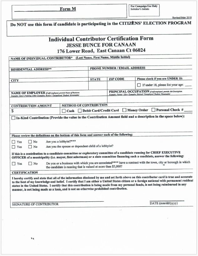 Fill out this form and send it via email to jessebunce4canaan@gmail.com